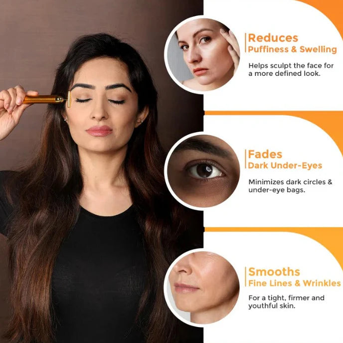 Introducing the 24K GoldGlow™ Vibrating Face Massager Kit — the sleek, powerful beauty tool that refreshes your skin fast. This handheld massager brings professional-feel treatments into your daily routine, delivering visible lift and glow in minutes.